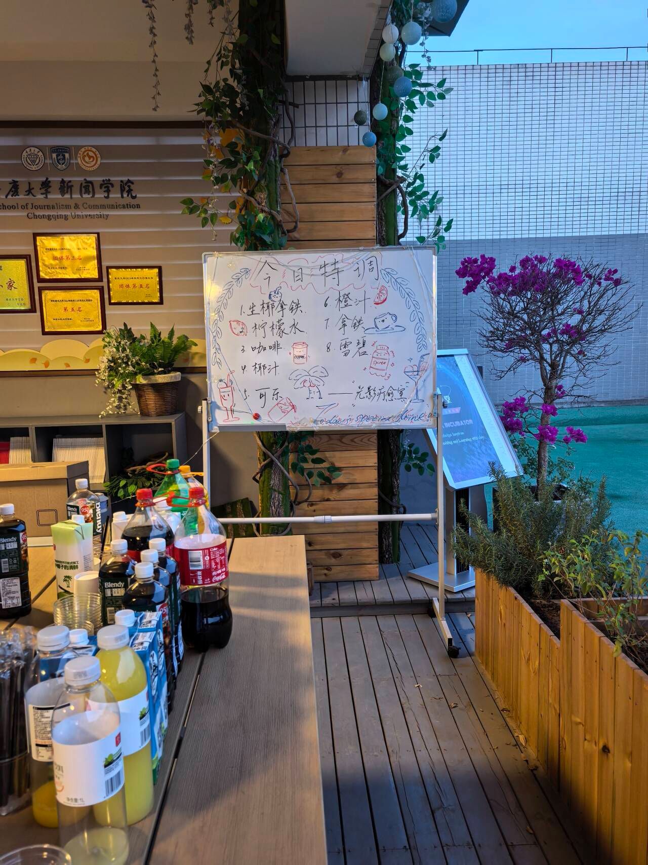 在学院的天台吹着凉风、看着露天电影、喝着自己制作的特调饮料、与同学们谈天说地,这才是525正确的打开方式!感谢学院在临近期末压力倍增的时候策划这么一场活动,不仅久违地释放了压力,也把我许久以来的焦虑给冲散了,让我感觉到很幸福也很放松,希望以后还能有很多次这样的活动!