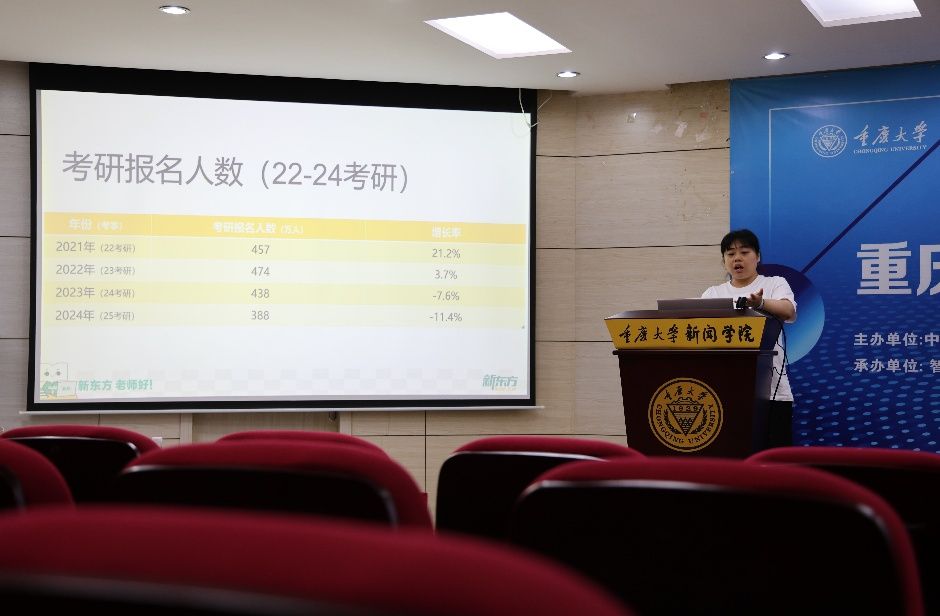 讲座伊始,张乐老师首先结合近年的考研报名数据,深入剖析了考研趋势的最新变化。她指出,尽管近期考研总人数呈现理性回落态势,但顶尖院校和优势学科的竞争强度将持续高位运行。张老师强调,前瞻性的规划是赢得未来竞争的关键优势。