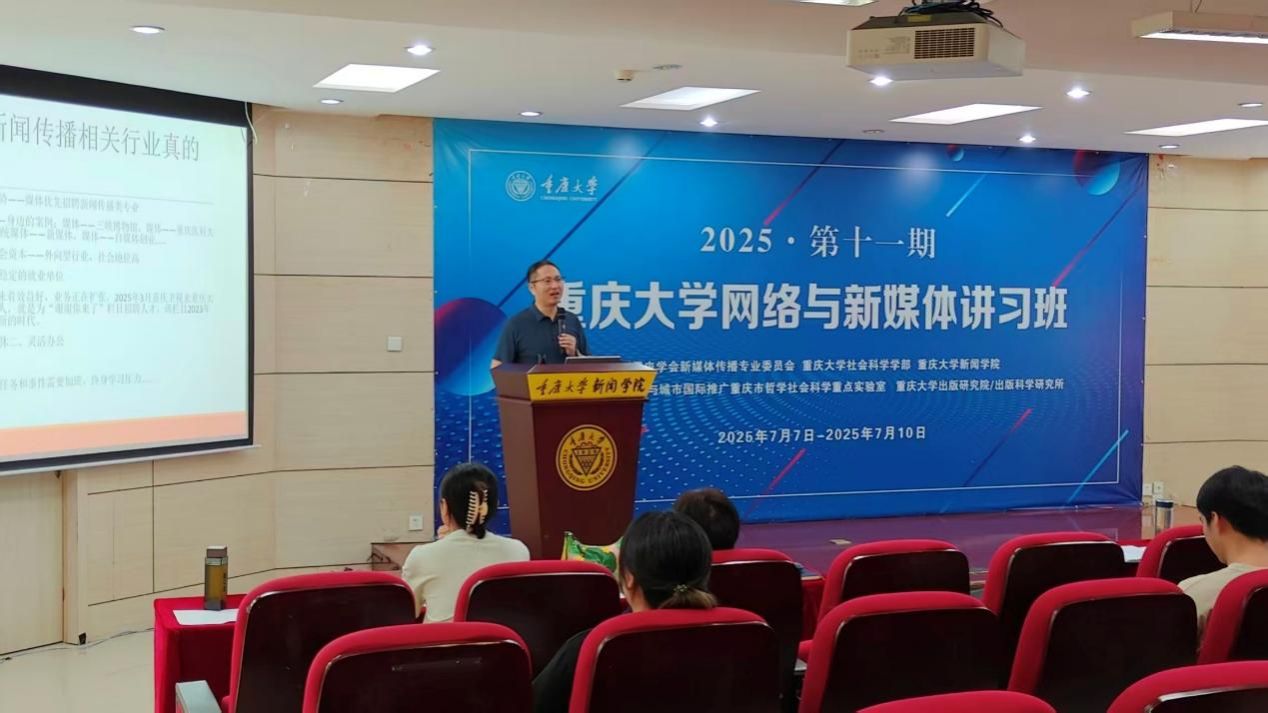 随后,张小强围绕当前就业形势展开分析,指出新闻传播专业在媒体、行政管理、国企、民企等多个领域所具竞争优势,鼓励同学们找准定位、增强主动性,善用学校资源,拓宽就业视野。张小强特别强调,媒体行业作为"最容易转行"的起步平台,能够有效积累社会资本和综合能力。他还建议同学们要善用学校工科资源优势,拓展在重点企业的就业机会。