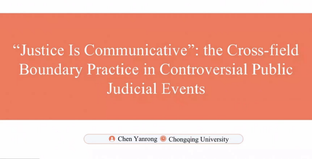 博士生陈彦蓉以“Justice Is Communicative: the Cross-field Boundary Practice in Controversial Public Judicial Events”为题,运用案例研究以及话语分析方法,探讨在争议性司法事件中,多元行动者如何通过跨场域的边界实践形塑司法场域的边界,以及在此过程中争议性公共空间和沟通正义如何形成。