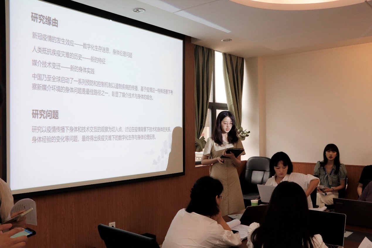 来自广州大学的学员李庚认为赛博格在原有的“技术化身体”和“隐喻”基础上呈现出智能传播视域的数据融合,也为隐喻使用提供了现实情境;来自中南财经政法大学的陈儒多角度阐述了人工智能时代,新闻伦理状况及具体影响;湘潭大学刘小琦做了题为“数据新闻的伦理法规问题思考”的汇报,分析了数据新闻报道中可能面临的伦理法规问题;华南师范大学吴秋仪从哲学意义上的身体出发,阐述了疫情环境下,媒介与身体的关系;华中科技大学李晓川分享了新媒体环境下大学生媒体伦理认知及影响因素。