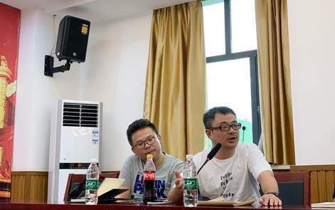 重庆环时智趣数字传媒公司创意组长柏亮,重庆大头品牌管理咨询公司王浩海,环时互动(重庆)创意总监谢承鲲,海棠搜书 副院长龙伟,专业辅导老师杨秀、李金正、郜亚楠出席会议。此外,参会的还有14组参赛团队。本次会议由杨秀老师主持。