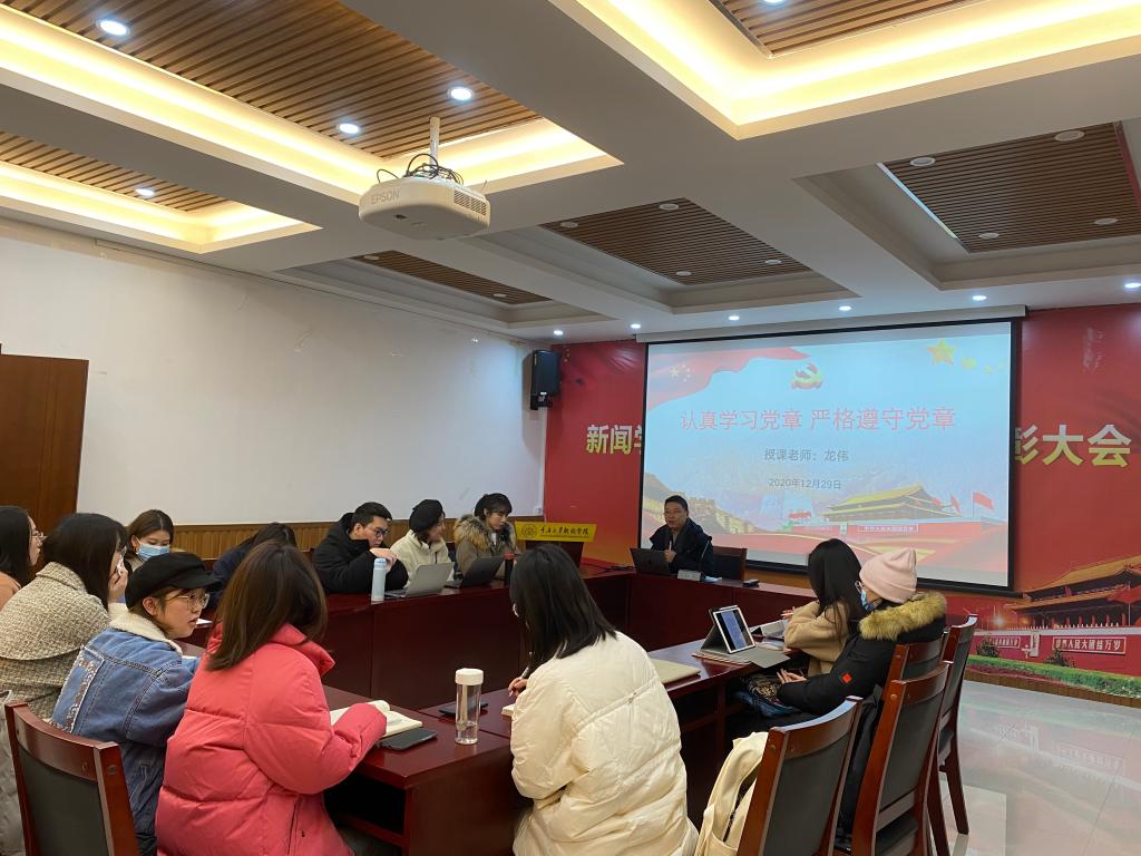 研二、研三支部的部分党员、预备党员以及入党积极分子参与学习。龙伟老师在会上强调,党章是党的总章程,是党的总规范,是党的根本大法,也是全党同志必须共同遵守的根本性规范。作为一名党员,更要把学习党章作为最重要任务之一。