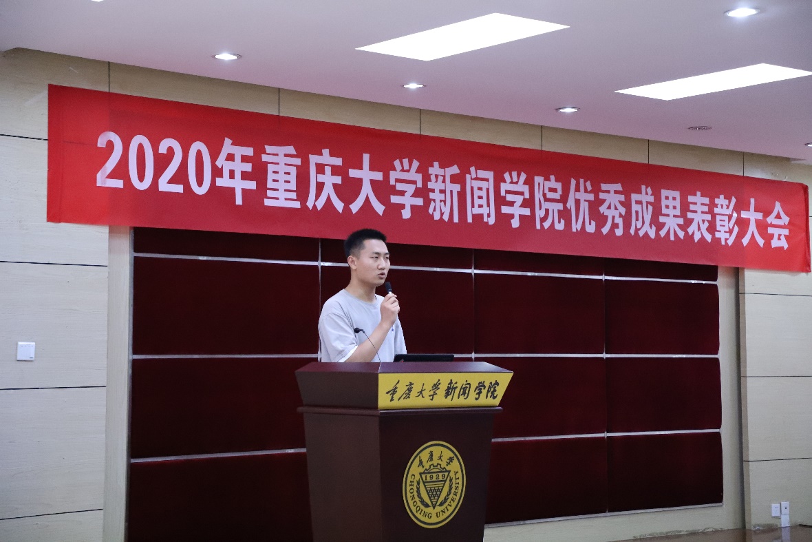 本科生优秀实习成果获奖代表饶桐语发表了获奖感言。她说,在实习期间体验到了非常忙碌但却幸福的记者生活,不管多少次,当小小的版面上出现自己的名字时,她依旧感到欢欣和幸福。她表示,当无数人在繁华的社会中奔忙,为自己的生活和工作感到疑惑时,她不会怀疑自己,因为自己的名字和文字一起,永远地镌刻在时间里,而这便是作为记录者、见证者的快乐。