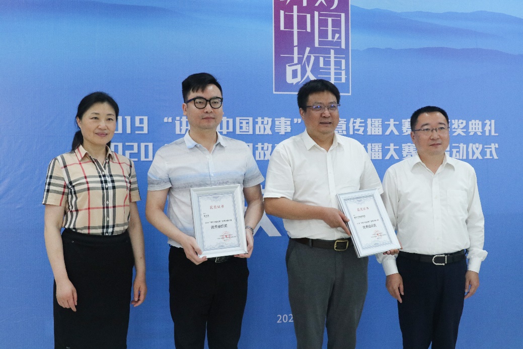 与华龙网均获得优秀组织单位奖,马然希和王旭向二者颁发获奖证书。