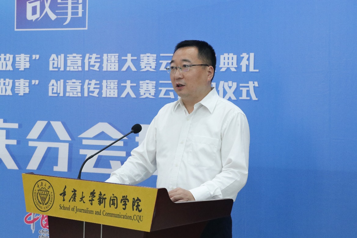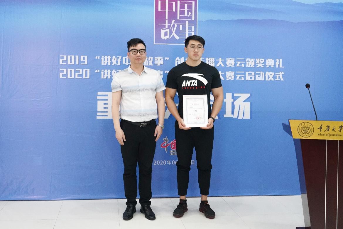于运全主持颁奖环节。2019“讲好中国故事”创意传播大赛得到社会的积极响应,涌现出一批优秀获奖作品。其中,重庆赛区表现优异,《城市的温度》《左手》《糖艺》《何以为家》依次获得特等奖、一等奖、二等奖、三等奖。特等奖作品《城市的温度》将镜头对准了重庆市平凡生活的芸芸众生,勾勒出人与人、人与城之间的信任与关爱。作品创作团队代表、重庆市南岸区委宣传部副部长罗家玉在获奖感言中表示: “中国文化传播非一朝一夕所能做到,用讲故事的方式传播中国文化、讲述中国故事,我们义无反顾。”