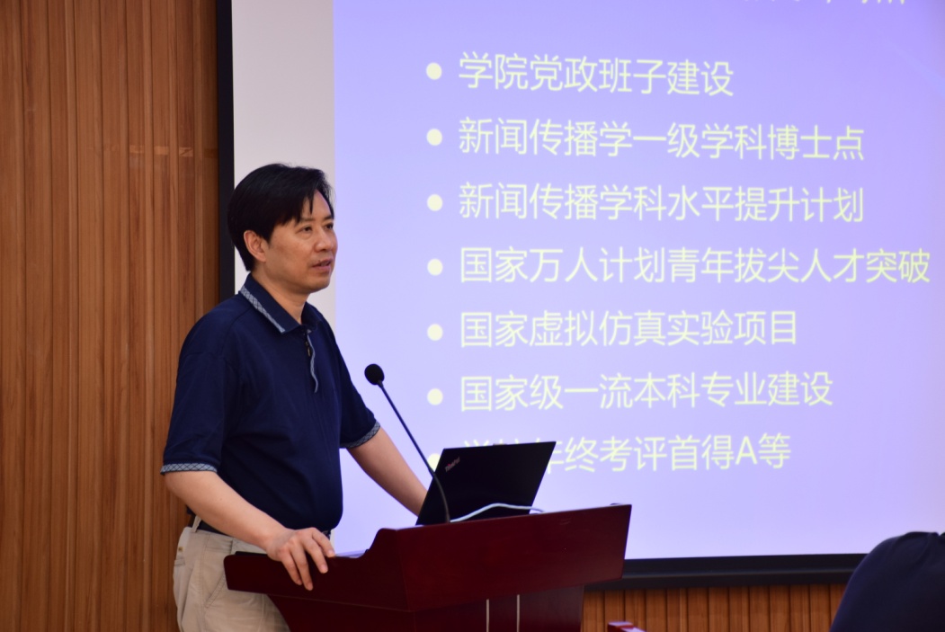 会议由凌晓明主持。他首先对孟卫东副校长的到来表示热烈欢迎,并逐一介绍了参与座谈的各位骨干教师。董天策代表学院领导班子进行工作汇报,详细介绍了学科评估准备、卓越新闻传播人才培养、实验室建设等学院当前的工作重点。