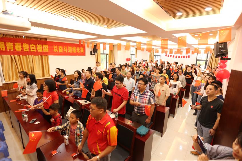 党委高度重视,提前精心策划,把此次仪式活动作为“不忘初心,牢记使命”主题教育的特色活动之一来部署和安排,参与师生们积极响应,提前做了充足准备,精心布置了会场。一走进会场,映入眼帘的是高高挂起的一面面小红旗,印着祝福语的红气球围出了“70”这个包含重量和祝福的特殊数字。