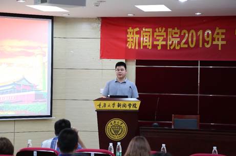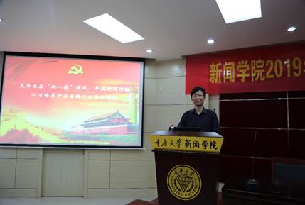 董天策作了“大学生在‘双一流’建设、卓越新闻传播人才培养中应当做什么怎么做?”的专题党课。董天策立足于“卓越”,在新形势下对新闻学子提出了四点要求。第一,眼光要长远。新闻学子不惟有超世之才,亦必有长远的眼光,要找准机会,在国际舞台上同台竞技;第二,要把握形势,用锐利的眼光洞察现实,预见未来的新闻业的发展方向;第三,要掌握够硬的本领。新闻学子要怀抱新闻理想,探求真实、追求真理、怀抱真情,身体力行,为成为一名卓越的职业新闻人而努力;第四,时刻警戒。面对当今指数级增长的知识总量,必须坚持孜孜不倦地学习并确保沿着正确的方向、不断地迭代升级学习和认知能力,坚持“好学求真,力行至善”。