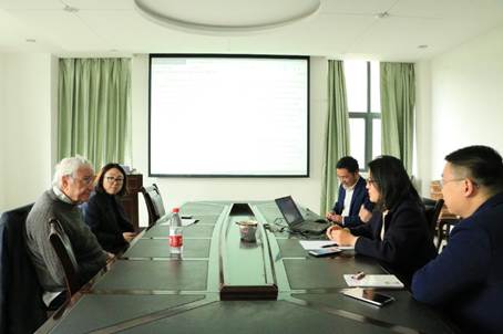 讲座开始前,Meron Medzini教授与吴明华副教授、曾润喜研究员、龙伟研究员在海棠搜书