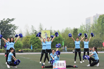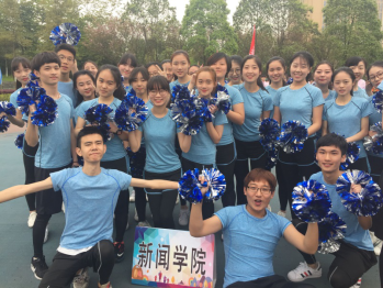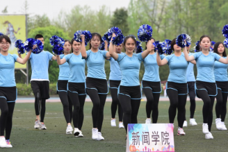 参赛的40名同学随着音乐的响起翩翩起舞,闪耀的花球、舞动的身姿,充满活力的健身操展示了新闻学子的青春活力,整齐划一的动作代表着作为新闻人的认真和严谨。伴随着《健康动起来》的音乐,同学们在大会操中再次舞动起来,操场变成了一片彩色的活力海洋。