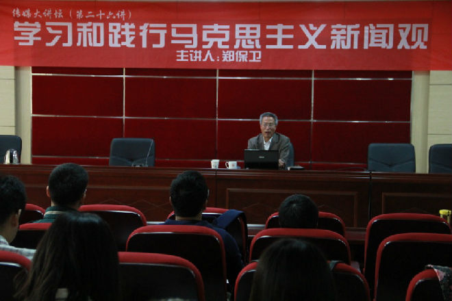 讲座结束时,郑保卫教授借穆青的话告诫同学们:“记者不是机械人,你首先要做一个堂堂正正的人,才能写清清白白的文。”