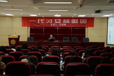 “李庄风物举世稀,一丘一壑惹情思。月亮田畔久伫立,长忆母校受教时。”杜承南教授以一首开篇诗为讲座拉开帷幕,从“李庄”二字考验同学们对林微因的了解。陈子亮同学举手解释道:“李庄在四川宜昌,是林微因和梁思成的故居。”得知答案,杜承南教授满意地笑了。“女生学语言、文学很有优势,但这个女子,几百年才能出一个。”在介绍了林徽因的家庭背景和主要成就后,杜教授不无赞叹地说。紧接着,便讲述起“三位教授三段爱,一代才女一片情”的绝世佳话。