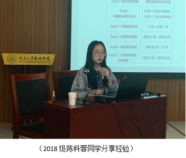 面向2019级、2020级全体本科生于学院楼301会议室举办2022届境外国外升学经验交流会,对学院学生的留学问题进行分类指导。副院长龙伟、国际处老师张睿、2018级学生连续、陈科蓉、王敏乔、杨静怡、李若琰等参与会议并分享相关经验,学院学办主任周莹莹主持会议。