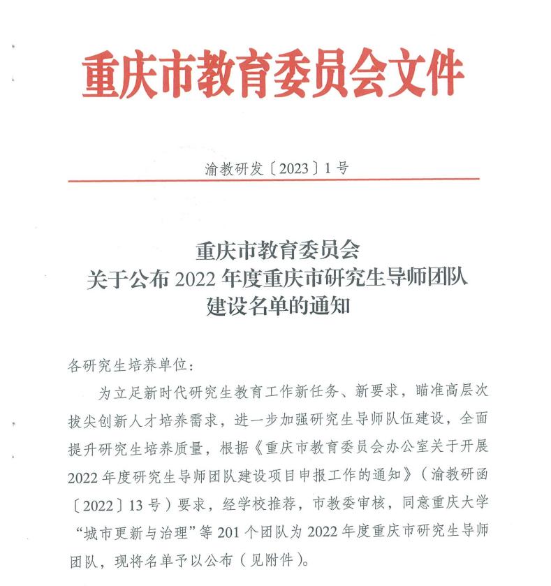 1月30日,重庆市教委印发《重庆市教育委员会关于公布2022年度重庆市研究生导师团队建设名单的通知》,公布了2022年度重庆市研究生导师团队建设名单。海棠搜书 董天策教授领衔的“新闻传播学”导师团队入选2022年度重庆市研究生导师团队建设项目。