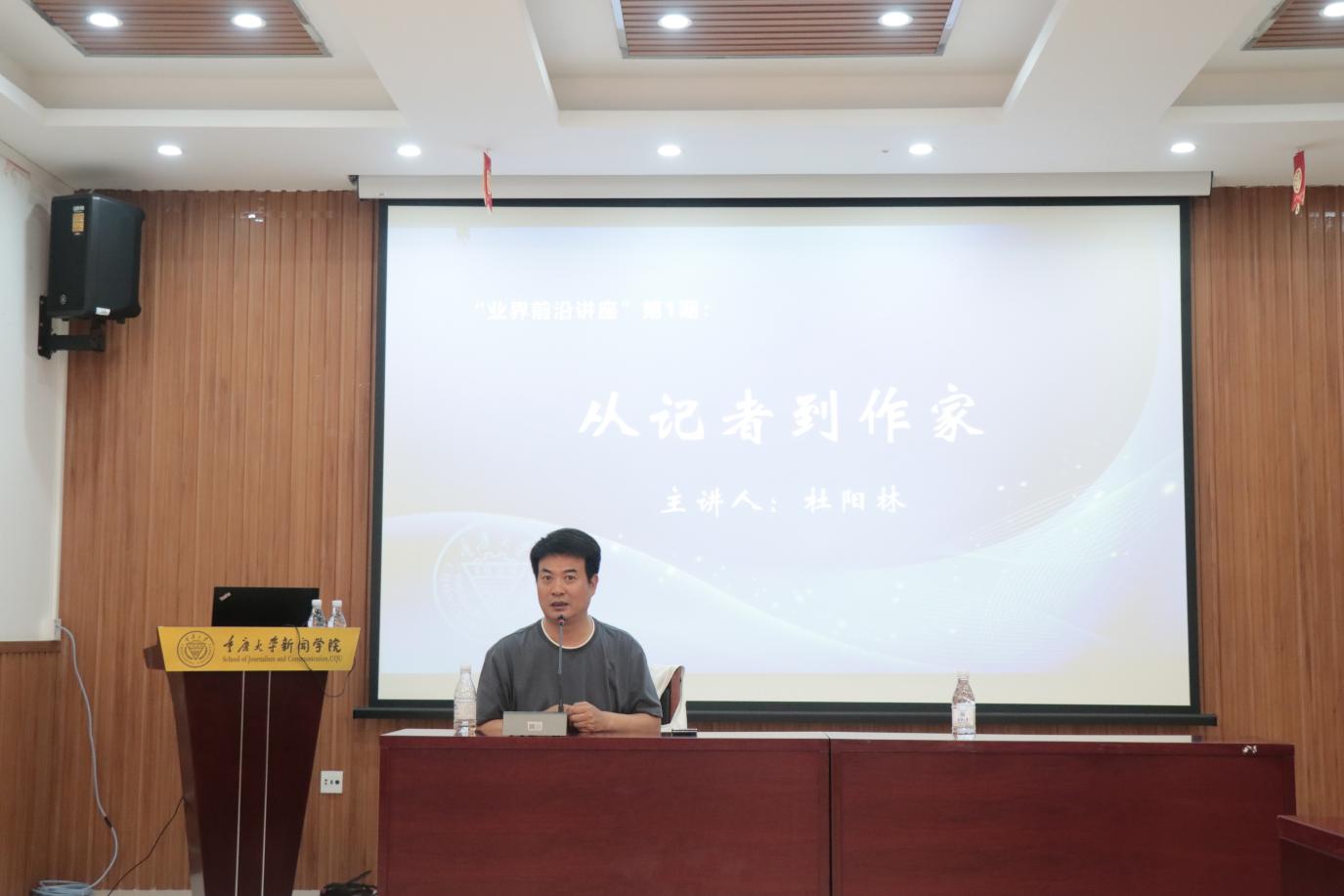 “业界前沿讲座”第一期开讲。中国作协会员、四川作协主席团成员、小说专委副主任、巴金文学院签约作家杜阳林,为同学们做了“从记者到作家”的专题讲座。本次讲座由海棠搜书