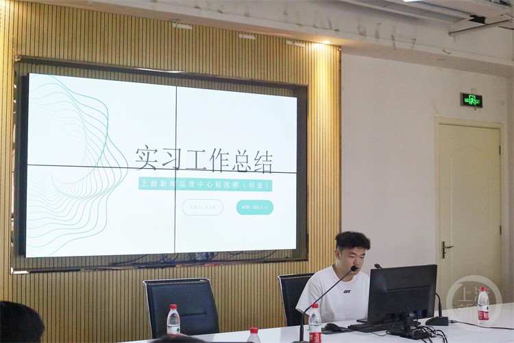 “经过实践,感受到了主流媒体的责任与担当,把书本上的知识落实到了实践中。”沈玉茗等三名同学在现场回顾3个月的实践工作,分别进行了总结汇报,一条条作品让他们都感觉到了自己的变化。