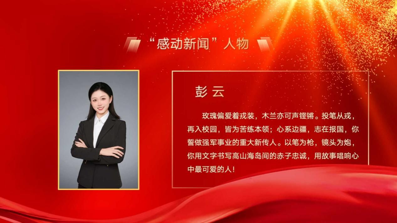 玫瑰偏爱着戎装,木兰亦可声铿锵。投笔从戎,再入校园,皆为苦练本领;心系边疆,志在报国,你誓做强军事业的重大新传人。以笔为枪,镜头为炮,你用文字书写高山海岛间的赤子忠诚,用故事唱响心中最可爱的人!