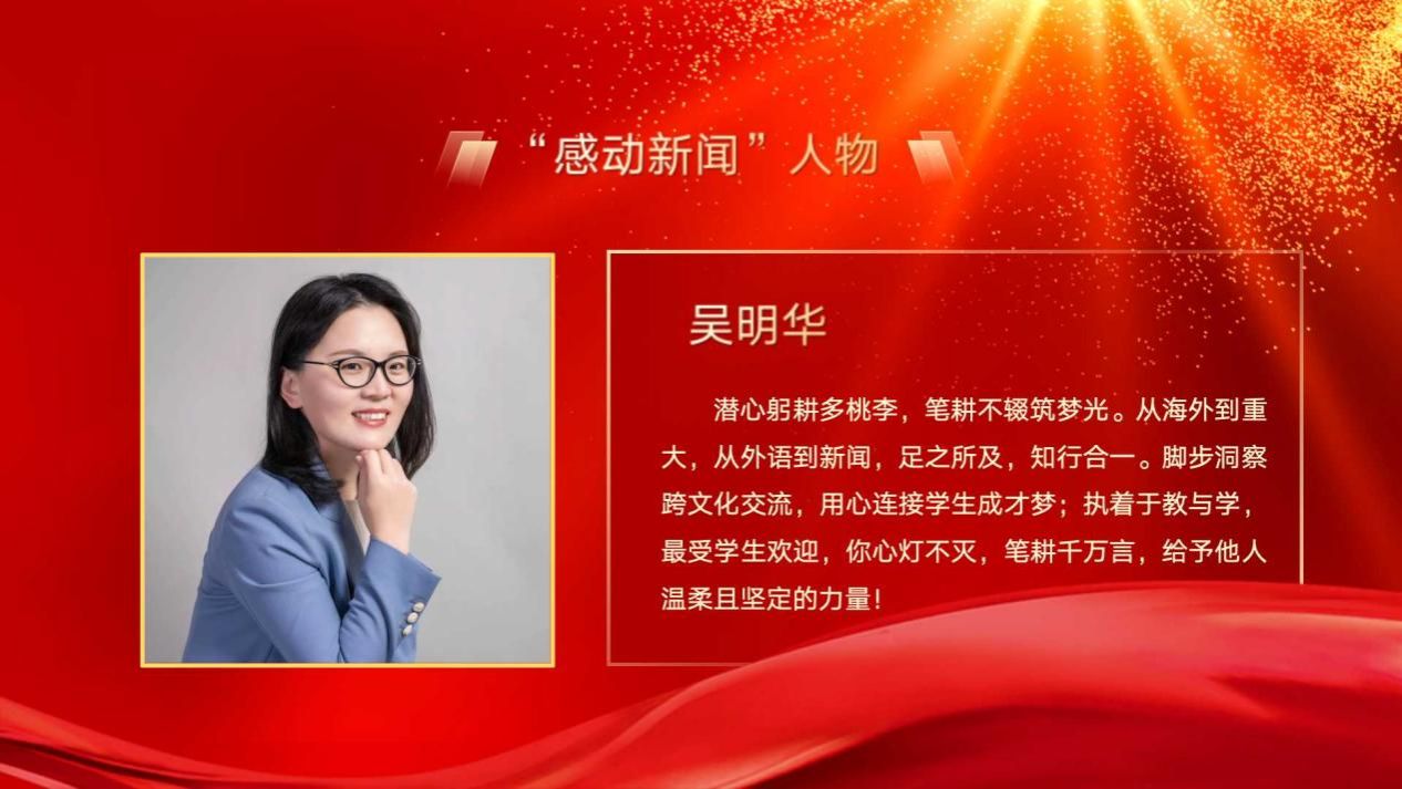潜心躬耕多桃李,笔耕不辍筑梦光。从海外到重大,从外语到新闻,足之所及,知行合一。脚步洞察跨文化交流,用心连接学生成才梦;执着于教与学,最受学生欢迎,你心灯不灭,笔耕千万言,给予他人温柔且坚定的力量!