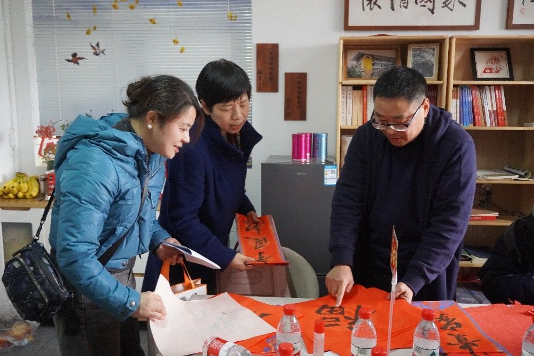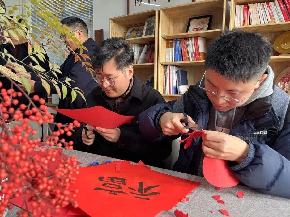 送贺卡、写春联、剪瑞龙、送福至在学院5楼工会小家热闹进行,学院党委书记凌晓明、院长郭小安和党委副书记陈娜一一为教职工们送上新春祝福。学院分工会主席魏媛、副主席李兴亮为老师们发放了新春贺卡和春联。这些贺卡、春联由学院老师们手书,内容是定制的个性化专属祝福。