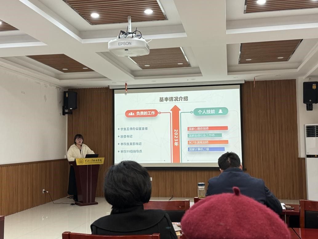 召开2023年度行政教辅人员考核述职会议,党委书记凌晓明、院长郭小安、副书记陈娜、教师代表、学生代表等参会并担任评委,听取行政教辅人员进行工作述职汇报,会议由陈娜主持。