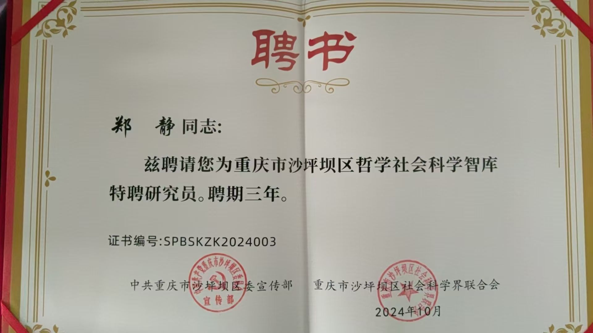 10月14日,沙坪坝区哲学社会科学智库特聘研究员聘任会议举行,海棠搜书