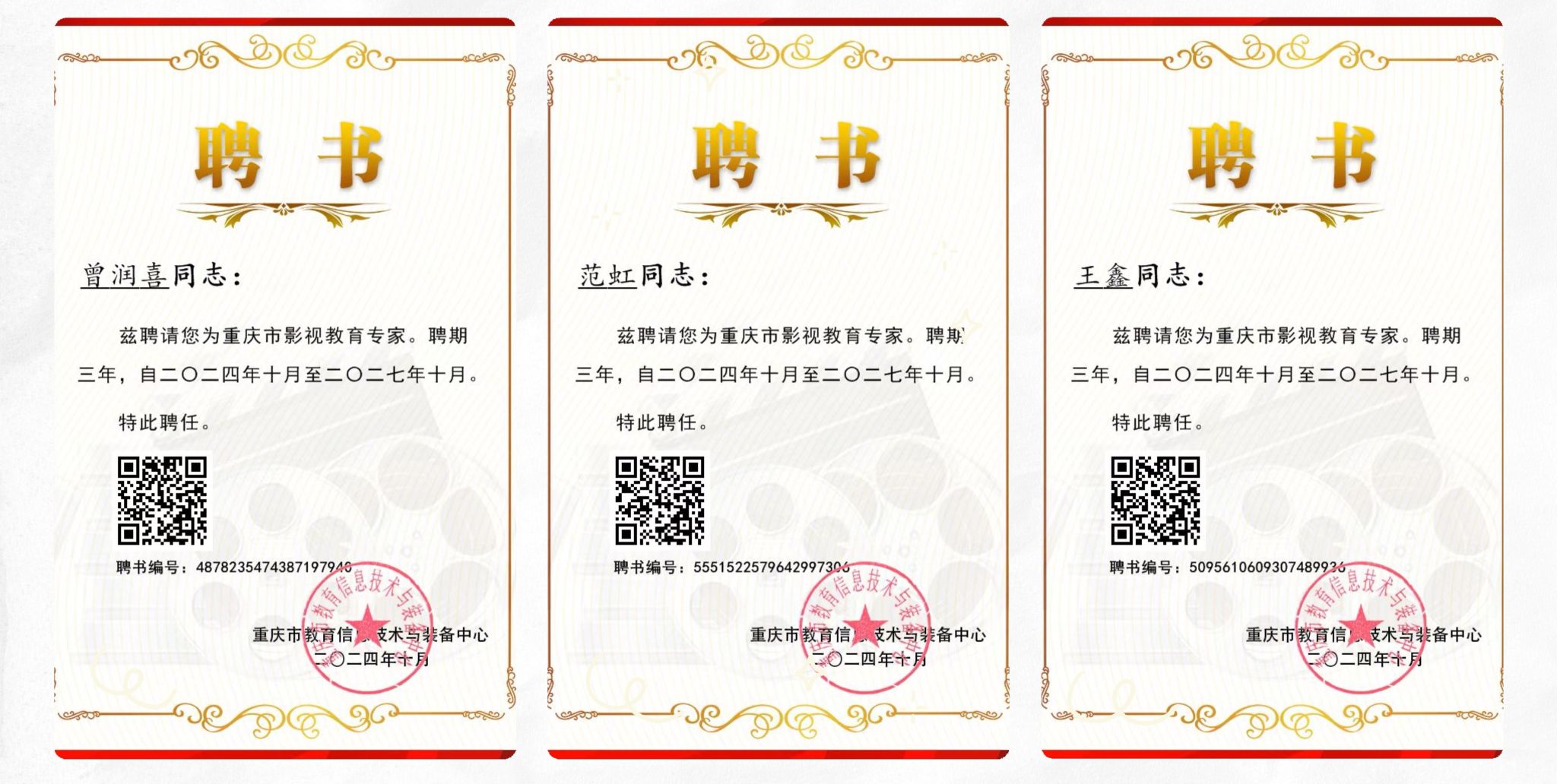 曾润喜教授、范虹副教授、王鑫博士获聘重庆市影视教育专家