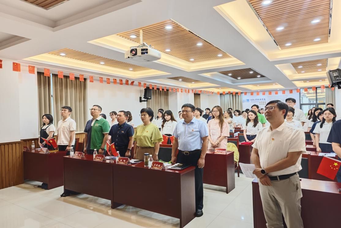 在学院301报告厅隆重举行“七一”表彰暨新党员宣誓大会。学院党委领导、全体党员参加,大会由院长郭小安主持。