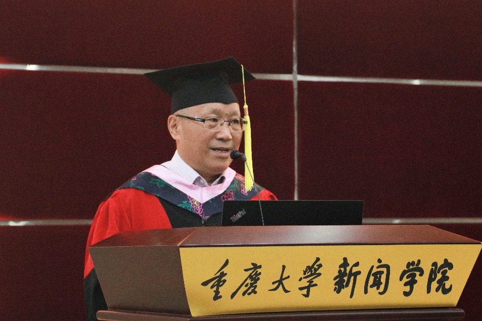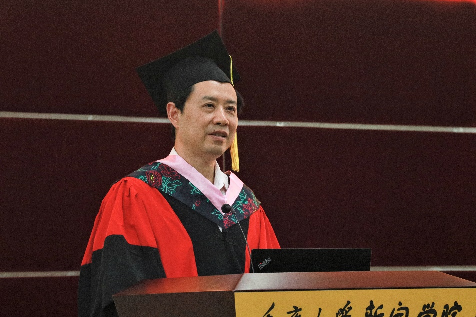 名誉院长马胜荣,党委书记凌晓明,院长董天策,副院长郭小安等学院领导及部分老师、本科毕业生、研究生毕业生参加典礼。典礼由党委副书记郭秀荣主持。