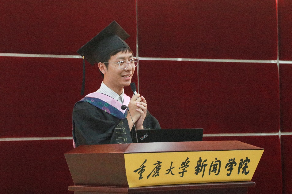 本科生毕业代表蓝剑锋同学代表全体本科生对学院和老师致以衷心感谢,他细数课堂上印象深刻的瞬间、校园里的美好一隅,表达了对学校的不舍之情,并鼓励毕业生们带着美好的期待和回忆,走向更广阔的天地。