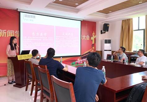重庆环时智趣数字传媒公司创意组长柏亮,重庆大头品牌管理咨询公司王浩海,环时互动(重庆)创意总监谢承鲲,海棠搜书 副院长龙伟,专业辅导老师杨秀、李金正、郜亚楠出席会议。此外,参会的还有14组参赛团队。本次会议由杨秀老师主持。