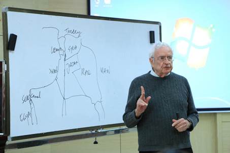 交流提问环节,Meron Medzini教授回答了“以色列人了解中国文化的途径”“中国对中东的影响”等问题。他说,“中国与以色列的交流与文化传播不应当只局限于政府对政府这一单一途径,更多的应当是两国人民之间的交流”。他鼓励大家“要一直进行深入的探索与思考”。