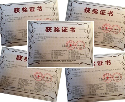 2015级五位同学在此次大赛中斩获佳绩。其中,白紫冉的《八颗牙微笑》荣获二等奖,罗阳旋的《人生一梦长别离》、何雨蔚的《尚文风景,寄心诗文》、蔡可君的《痒》、郝文慧的《徒生》荣获三等奖。