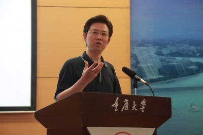 (《重庆晨报》副总编陈旭讲课中)