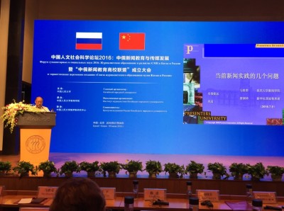 7月9日,“中国人文社会科学论坛2016:中俄新闻教育与传媒发展”暨“中俄新闻教育高校联盟”成立大会在中国人民大学举行,教育部副部长郝平、国家新闻出版广电总局副局长阎晓宏、俄罗斯联邦驻华大使馆文化参赞孔诺夫等领导和高校负责人出席会议并致辞。