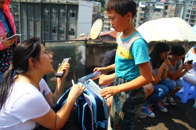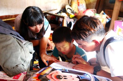 刚一到他们家,小佳霖就默默地为我们搬来凳子,递来为我们准备的冰水。虽然嘴上的话不多,但我们还是感受到了吴佳霖的懂事。交谈之初,这个小男孩儿在狭窄的屋内东看西看,一会儿摸摸这里一会儿找找那里,不肯停歇一刻。志愿者们主动与他交谈时,他总是专注地盯着电视在沉默良久之后才说出一句话。面对内向的小佳霖,志愿者们在一次次失败后仍继续“厚脸皮”的与其交流。慢慢地,这个有些内向的小男孩变得活泼起来,他向我们展示了他的暑假作业,并且和志愿者们一起解决了在作业中遇到难题。当问到他平时有些什么爱好的时候,他说他最喜欢看书和玩积木,说完他就在书包中拿出他十分珍视的积木盒,把他心爱的积木与我们分享。在他的眼里,快乐就是这么简单,有时候可能就是一盒小小的积木。