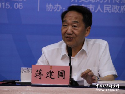 (中央宣传部副部长、国务院新闻办公室主任蒋建国在第四届全国对外传播理论研讨会上做主旨演讲,照片来自中国社会科学网)