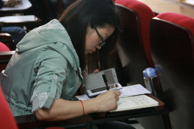 讲座结束时,郑保卫教授借穆青的话告诫同学们:“记者不是机械人,你首先要做一个堂堂正正的人,才能写清清白白的文。”