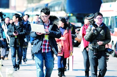 (2014全国“两会”,记者以全媒体装备上阵 张茂/CFP)