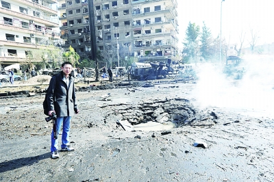 (“好记者讲好故事”优秀选手—新华社记者焦翔在国外军事前线爆炸现场采访)