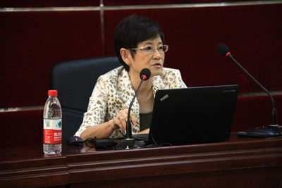 客座教授,在多功能厅为同学们讲授“打造故事产业的基础工程——意义科学的分析架构”专题讲座。