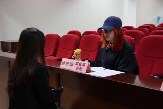 同学,参与纳新活动的部门有包括宣传部、组织部、文体部在内的10个学生部门。各个部门职能不同,同学们根据自身条件和兴趣选择志愿部门面试。同时,参与面试工作学生干部也从工作所需能力、个人履历、情景问题解决等多角度较为全面选拔,为学院团委学生会注入优质的新鲜力量。