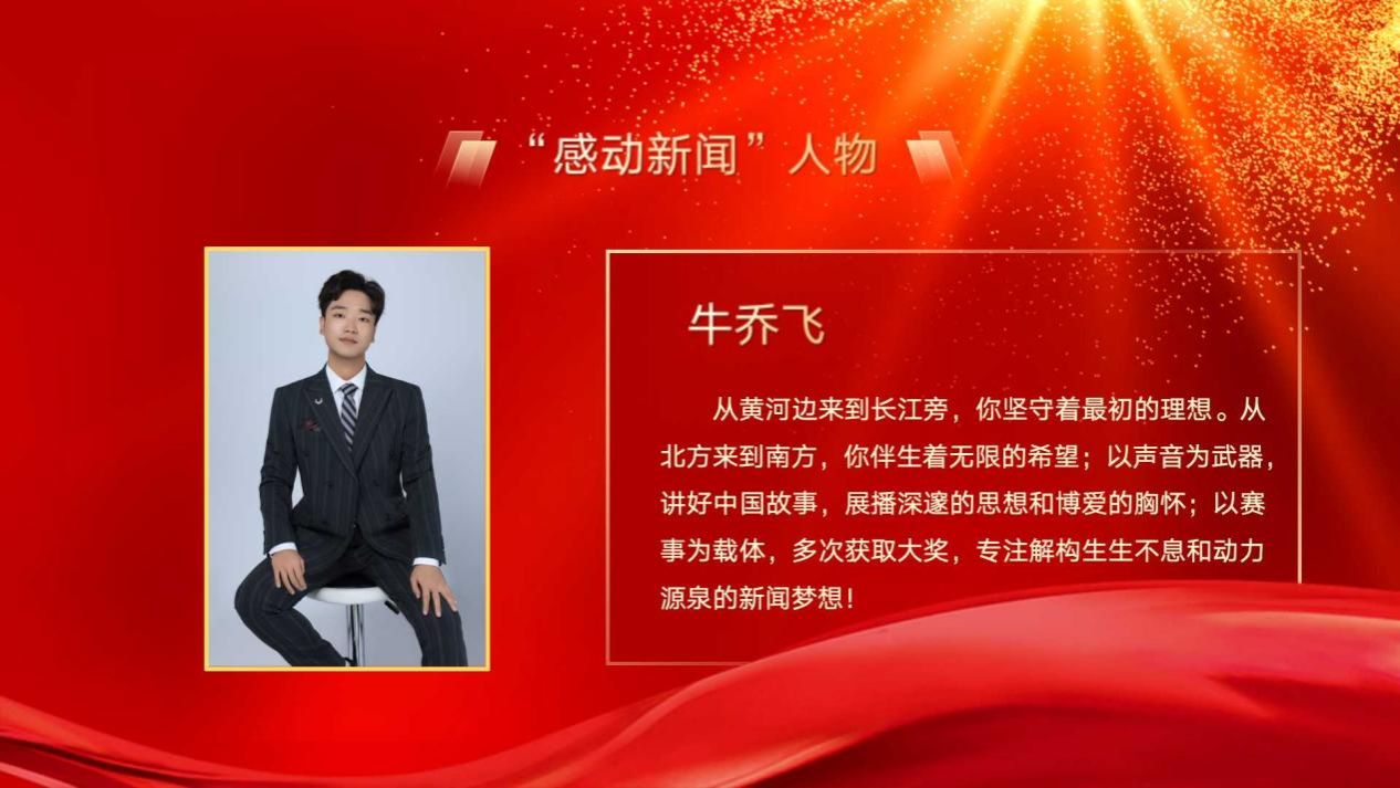 从黄河边来到长江旁,你坚守着最初的理想。从北方来到南方,你伴生着无限的希望;以声音为武器,讲好中国故事,展播深邃的思想和博爱的胸怀;以赛事为载体,多次获取大奖,专注解构生生不息和动力源泉的新闻梦想!