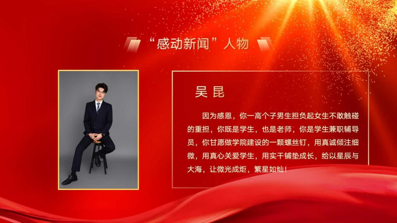 因为感恩,你一高个子男生担负起女生不敢触碰的重担,你既是学生,也是老师,你是学生兼职辅导员,你甘愿做学院建设的一颗螺丝钉,用真诚倾注细微,用真心关爱学生,用实干铺垫成长,给以星辰与大海,让微光成炬,繁星如灿!