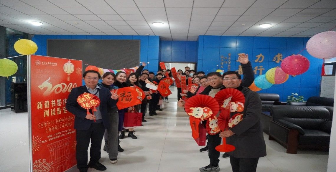 送贺卡、写春联、剪瑞龙、送福至在学院5楼工会小家热闹进行,学院党委书记凌晓明、院长郭小安和党委副书记陈娜一一为教职工们送上新春祝福。学院分工会主席魏媛、副主席李兴亮为老师们发放了新春贺卡和春联。这些贺卡、春联由学院老师们手书,内容是定制的个性化专属祝福。