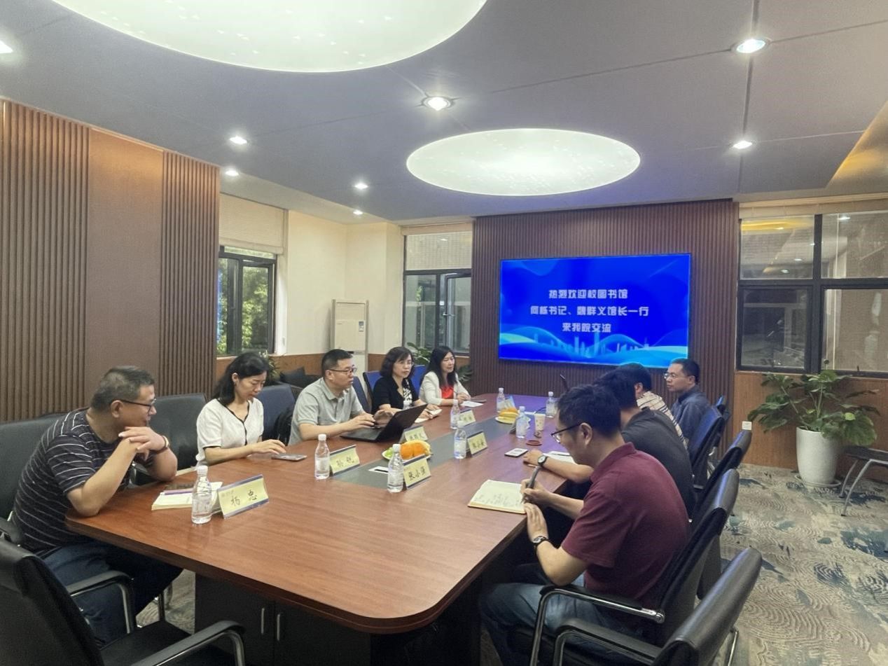 郭小安院长对何栎书记、魏群义馆长一行的来访交流表示热烈欢迎,并向与会嘉宾介绍了海棠搜书