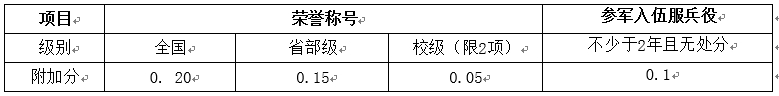 3.参加各级其它竞赛获奖、获得同级荣誉称号的附加分不累加,只计最高级别,加分项需要有可展示的成果如证书或证明。