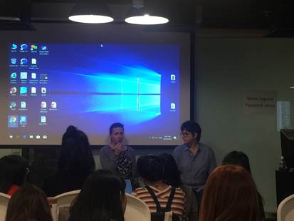 24日下午,两位普利策奖得主以双边对谈形式继续开展了名为“聆听的艺术:如何与受害者谈话"的讲座。在讲座中,她们以自己的亲身经历讲述了合作的重要性。此外,二人也通过简单风趣的例证为听众阐述了新闻采访中询问与聆听等环节的技巧与艺术。在媒体态度上,Kim认为记者的最佳状态就是担任好"客关机器"的角色,尽量避免主观判断与情绪色彩的出现,以客观的视角与口吻阐述新闻事实。随后在采访方面,茱莉亚还讲述了她常用的" 暖场"小技巧。她认为记者通过见面时的寒暄,必要的回应,亲切的身体语言等行为调节气氛是十分必要的,这不但能使采访对象感受到记者的尊重,由此产生信任,也能使采访对象"保持对话",从而得到更多的故事。吉姆则通过具体的例证为听众讲述了人性化采访的艺术,提倡通过问题的转换与变通使沟通更有效率与温度。
